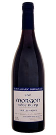 Here’s one that particularly stood out: Jean-Marc Burgaud’s Morgon Cote du Py. This was a fascinating wine with a much richer mouth-feel than the typical Pinot Noir and a lovely “woodsy” sort of quality that reminded me of mushrooms (which I happen to like). The wine was a deep red in the glass. The Wine Advocate’s Robert Parker bestowed 91 points on this wine saying, “Burgaud’s 2007 Morgon Cote de Py appears to reflect the unique microclimate and basalt-granite soil mix of that sector of Morgon. A nose of crushed stone, pungent, musky flowers, and fresh pomegranate and red raspberry is totally unlike that of the corresponding ‘Les Charmes’ bottling. In the mouth, this displays a brightness of ripe but tart red fruits, floral notes, and crushed stone mineral suggestions. Once again, there is a palpable but fine-grained tannic presence, and the long finish is at once cleansing, invigorating, intriguing and enticing. Follow this beauty for 4-5 years and you will continue to be richly rewarded.”