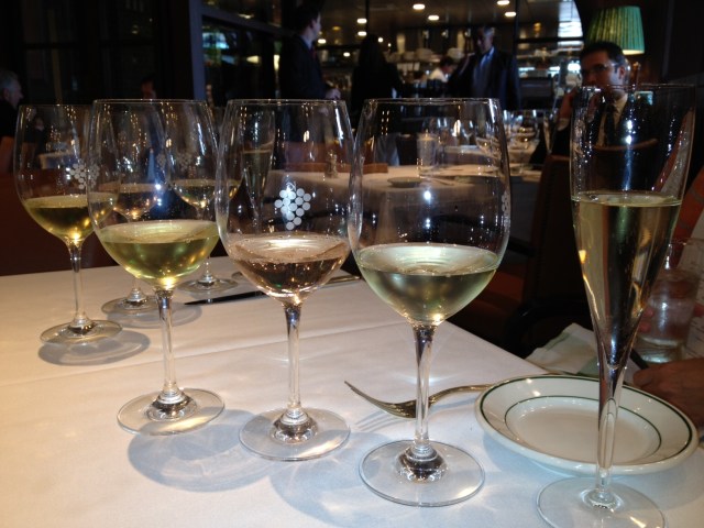 Wine Gal guest-blogging this week, as Mrs. Cups was regrettably unable to attend our bi-annual, favorite liquid lunch at Smith & Wollensky’s National Wine Week, held at Boston’s Atlantic Wharf location, Sept. 17-21. S&W holds this bacchanalia twice a year and offers 10 glasses of wine for $10 with the purchase of a lunch entrée. Now, these are half pours (because it is lunchtime after all) but happy diners get to sample 4 whites and 6 reds from a curated selection that changes daily throughout the week. I dined and drank on Friday, 9/21, kicking off a lovely fall weekend with another frequent imbiber, Bella Brilla, and Mrs. Cups was sorely missed.